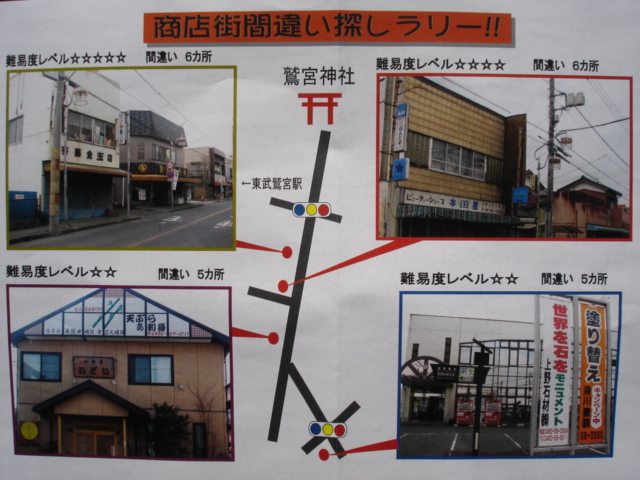 間違い探しラリーは神社への道中にある景色の間違い探しなので、見つけては立ち止まり間違いを探して印をつけて。