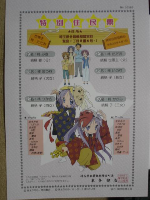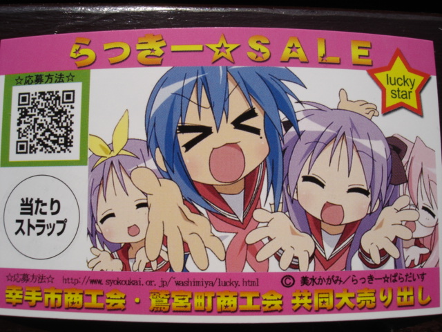で、最初の4人がらき☆すたの幟、後の4人がらき☆すたスタンプラリーの旗を手に入れました…羨ましい。